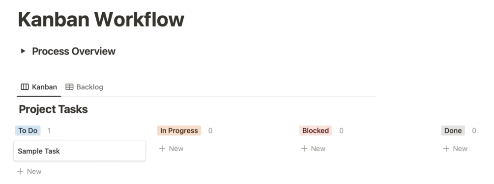 - Simple Kanban board that can be adapted to your process